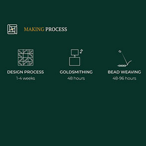 Each piece is uniquely made by hand and should be cared accordingly. Do not expose it to perfumes or products containing alcohol, avoid direct contact w ith water.